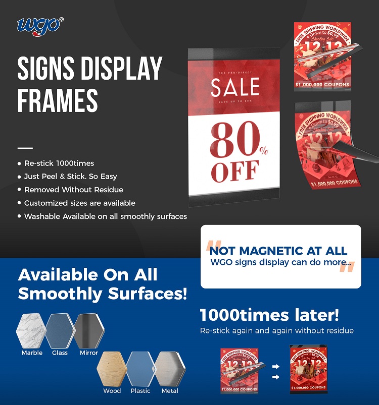 WGO removable photo frame is a kind of creative and innovative design, which is made by clear PVC board with printed frame, laminated with removable glue on the back side.